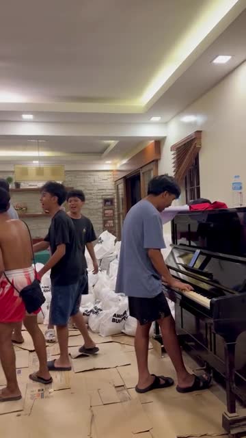 The group signed up to help at the nongovernment organisation Angat Buhay Foundation, where they were assigned to assist in lifting donated rice, coffee, milk, and other instant meal packs off the back of a lorry in Naga, the Philippines, on October 30.