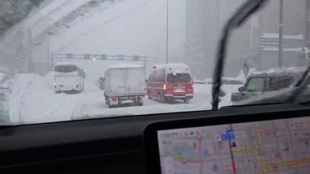 Footage shows vehicles cautiously navigating slippery roads, with some coming to a halt on highways as heavy snowfall blanketed Sapporo on January 25. 2026-01-27 17:53:09