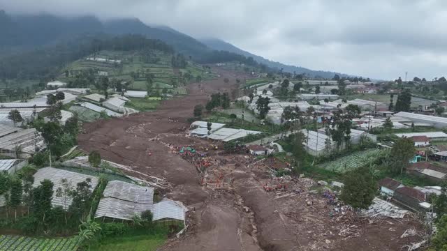 The earth collapsed onto the village of Pasirlangu in the West Bandung region of Indonesia's West Java province at around 2 am on January 26 following several days of torrential rain. 2026-01-27 16:12:24