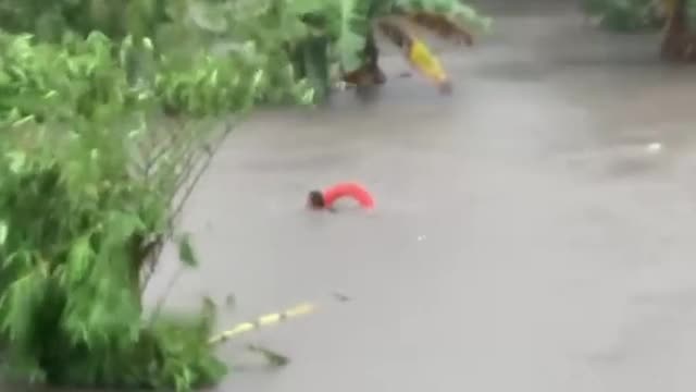 Footage shows the guard gleefully steering the pram that held a 12-year-old poodle named Chichi while a two-year-old brown pooch named Bomi ran around him in Manila, the Philippines, on August 17.