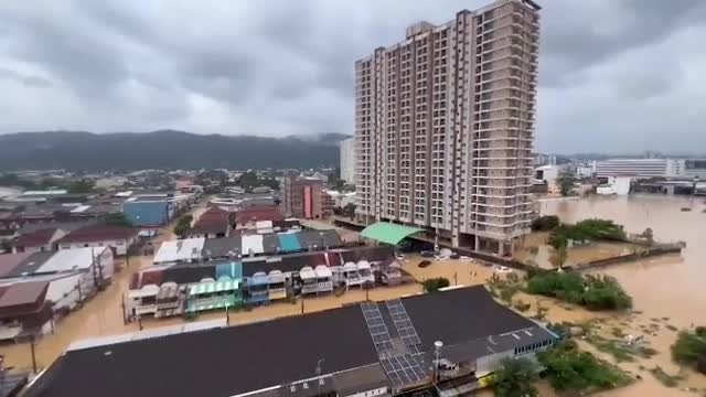 The drenched animal was desperately clinging onto the undergrowth to escape severe floods that tore through a neighbourhood in Songkhla province, on November 25. 2025-11-28 11:27:09