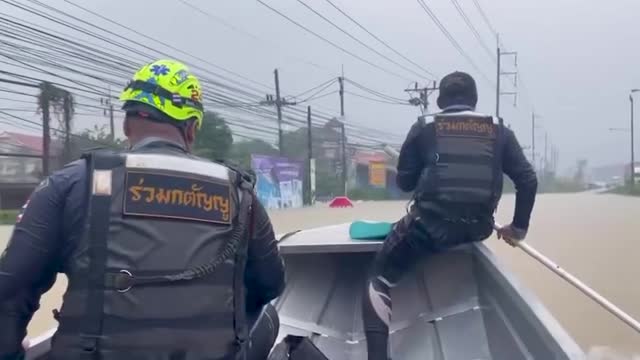 The bovine was swimming through tall floodwaters when it was caught in a coil of electric cables in Songkhla province, on November 26. 2025-11-27 14:24:27