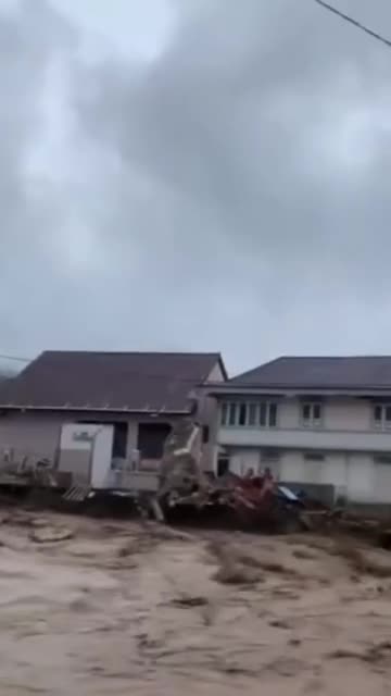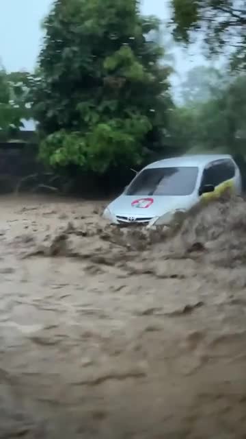 Footage shows vehicles being washed away by the powerful torrent tearing through the Lumin Park Housing Complex in Padang City, West Sumatra, on November 27. 2025-11-28 11:32:16