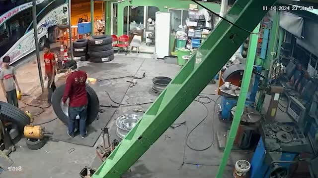 Bus owner Saard, 58, took his double-decker vehicle in for wheel maintenance at an automobile repair shop in Nonthaburi, Thailand, on October 16.