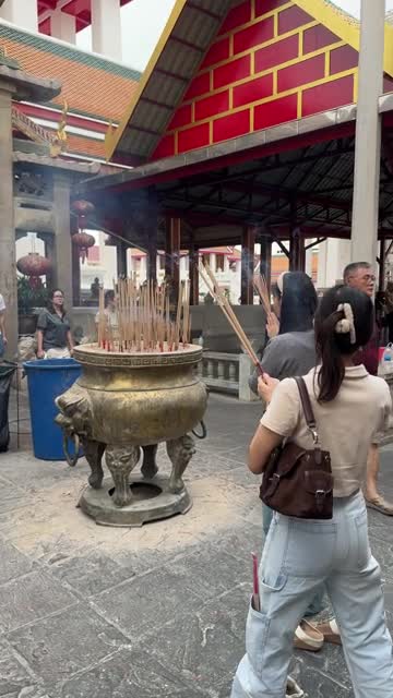 Worshippers can be seen holding the joss sticks with both hands as they pray, before placing them into a golden-coloured cauldron at the Wat Kanlayanamit Woramahawihan temple in Bangkok, Thailand. 2026-01-26 14:30:35