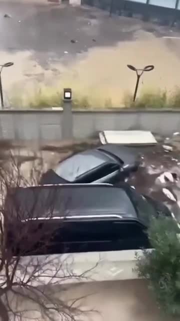 Footage shows several four-wheel-drive vehicles being dragged through muddy water along with debris in the resort town of Kusadasi, in Aydin province, on January 22. 2026-01-26 13:44:21