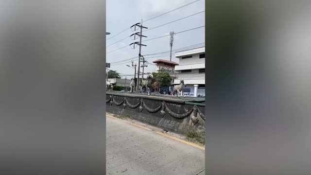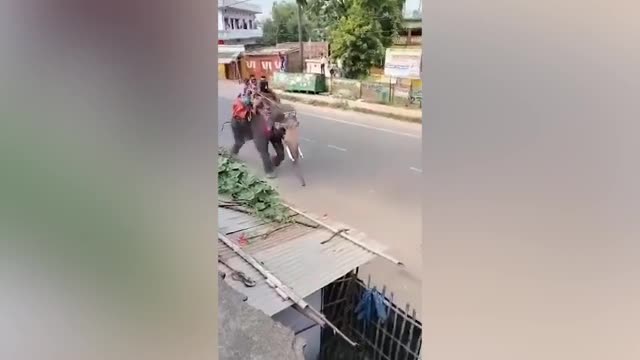 Footage shows the animal rampaging through a market area with three locals precariously perched on its back in the Saran district, Bihar, on October 12. Onlookers fled in all directions, shouting in panic as chaos erupted.