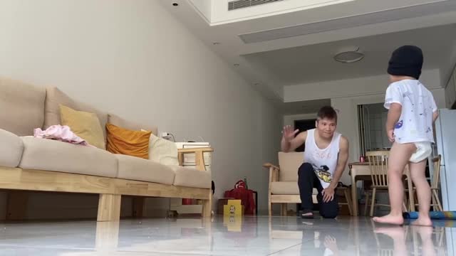 Video shows the child - still wearing his nappies - showing off his awesome dance moves as he performed handstands, headstands, and freeze poses at home in Yueyang City in Hunan, China, on September 1.