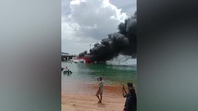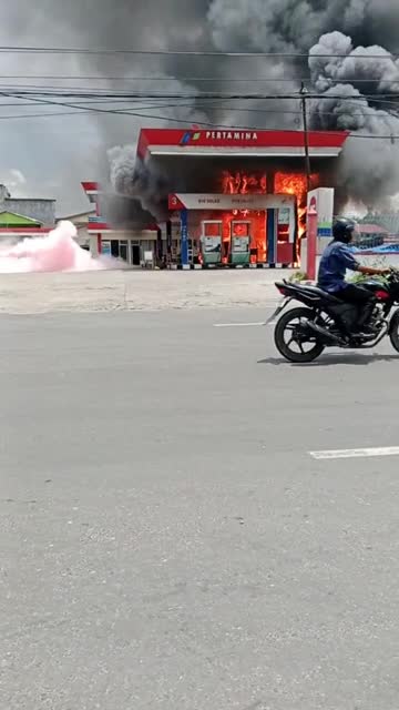 Footage shows flames ripping through the Galon Oyon station near a public market in Subulussalam City, Aceh province, on October 10. Black smoke billowed as the raging blaze spread to the station's canopy.