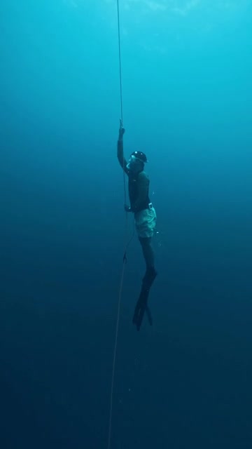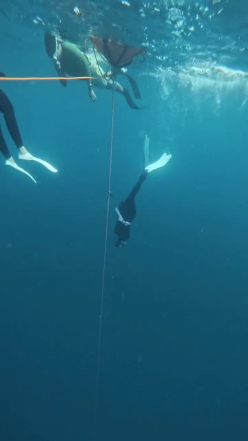 Footage shows the divers gliding downwards trailing a cord pulled by a weight 65ft (20metres) to the bottom in Batangas province, the Philippines on June 2. 2024-10-11 11:16:11