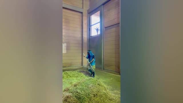 Yuhi, a three-year-old giraffe, was spotted intensely gazing at the worker, Ayumi Sera, as he fixed the animal's enclosure in Fukuyama, Japan, on September 5. 2024-10-11 11:34:45