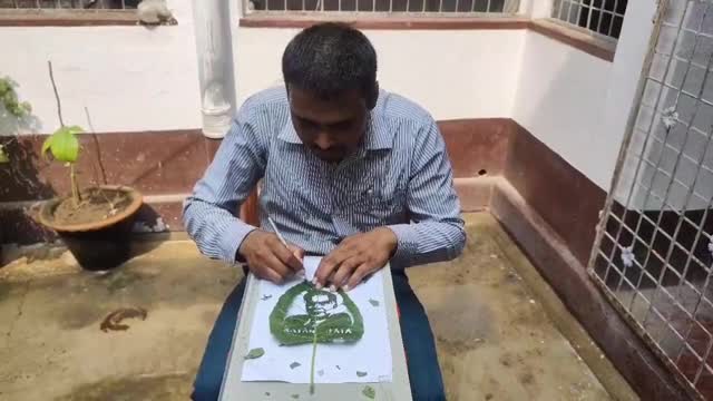 Footage shows Madhurendra carefully carving the face of the famous industrialist into a peepal leaf in Mothihari, Bihar, on October 10. He inscribed the name with 'RIP' on the lower side. 2024-10-11 11:59:08