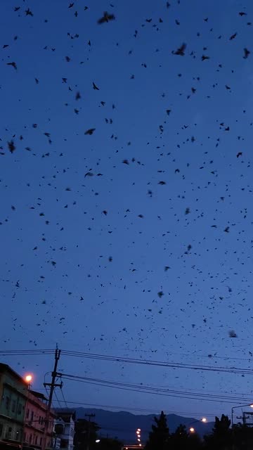 Footage shows the flocks of swallows swarming above a commercial area, looking like dark figures with bluish grey horizon as a backdrop in Nan province on October 7 at 6 pm. 2024-10-11 11:37:35