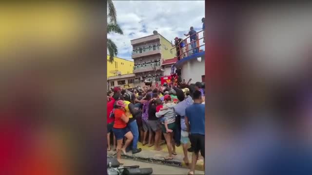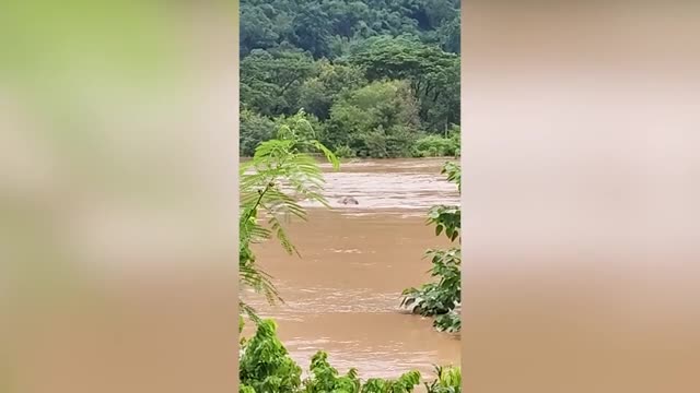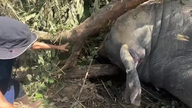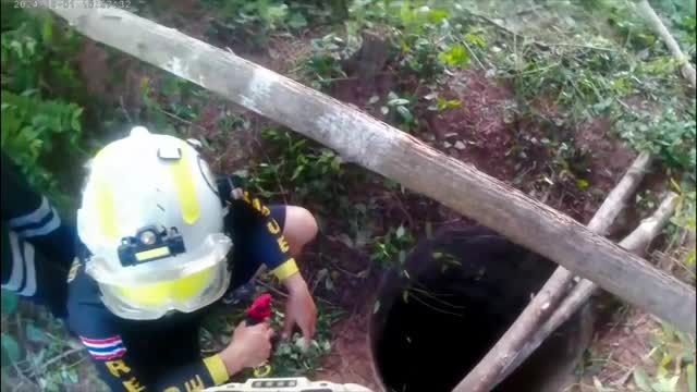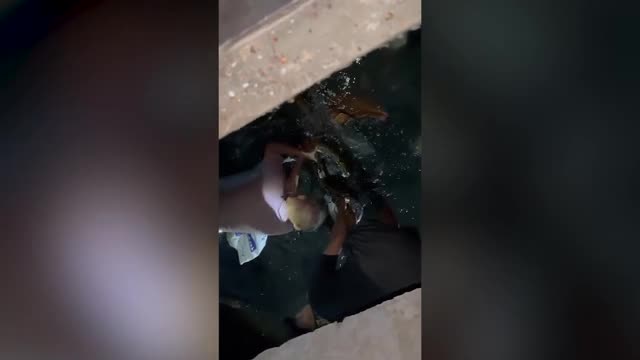 Footage shows a rescuer in the ditch near a public toilet at a vegetable market in Shahdol District, Madhya Pradesh, on October 5. Others assisted from above, helping to tie a rope around the animal's body to lift it to safety.