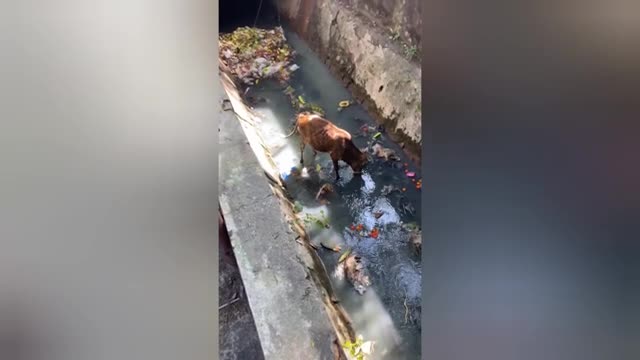 Mother cow stuck in drain rescued in India