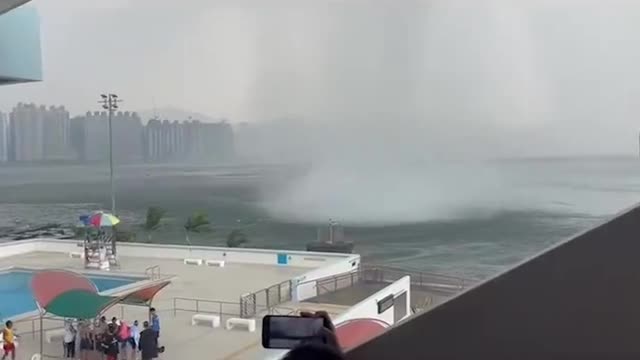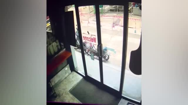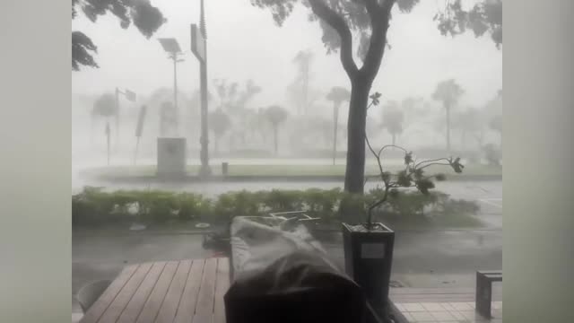 Footage shows smoke from the blaze at the medical facility amid heavy rainfall in Pingtung County, coinciding with Typhoon Krathon making landfall in the southern part of the island on October 3.