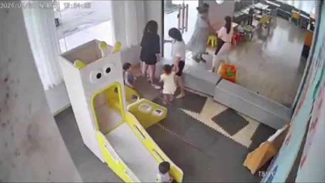 Footage shows two mothers trading insults in a kindergarten in Taizhou, Jiangsu, after the child belonging to the woman in black allegedly slapped another woman's child, causing her to become angry. 2024-10-03 14:02:18