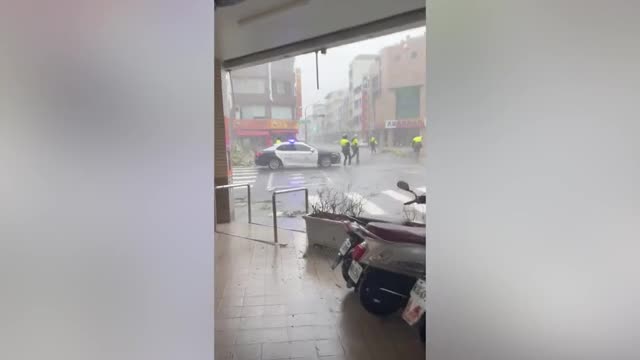 Footage captured in Kaohsiung City on Thursday morning shows the rain and strong gusts battering the region.