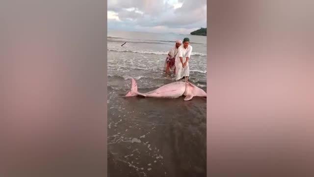 The Indo-Pacific humpback dolphin with the beautiful shade was spotted by residents stuck in the shallows before being saved in a DIY operation in Satun province, Thailand's Bu Boi beach, on September 30.