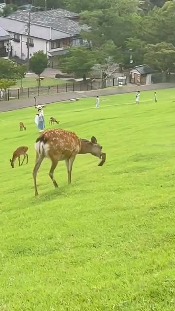The fawn grabbed the identification booklet in an open field at Sheyang Cloud Ranch in Liaoning, China, on August 11.