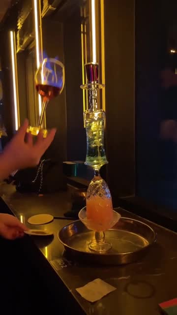 The cocktail artist stacked several drinks and poured a burning alcoholic beverage onto the top, causing the entire structure to burst into vibrant blue flames in Shaanxi, China, on August 17.