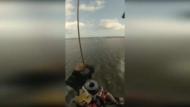 The U.S. Coast Guard from Air Station Clearwater, using the MH-60 Jayhawk helicopter, received a MayDay call prompting them to immediately save the distressed man from the choppy ocean during Hurricane Helene in Gulfport, Florida, on September 27.