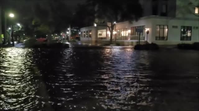 Dramatic footage captured by the police department shows Barcarotta Boulevard and 1st Avenue turning into torrential rivers as the Manatee River overflowed on September 26.
