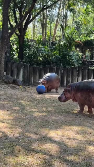 Footage shows Mae Mali, 60, the oldest hippopotamus in Thailand, and her Khamu, nudging a blue inflatable ball back and forth at Khao Kheow Zoo in Chonburi. 2026-01-22 14:26:14