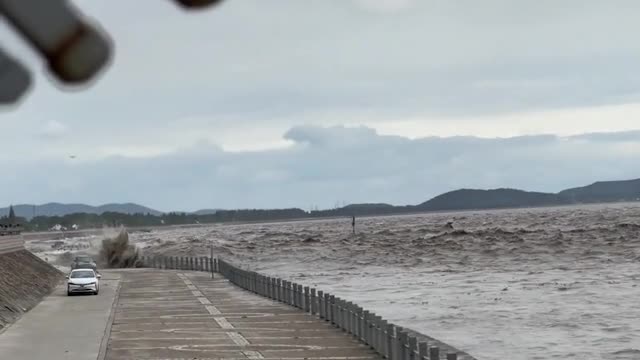 Onlooker Michelle Koleychik said: 'Check out these fascinating wave patterns, it's as if they’re colliding from both sides. Nature is truly putting on a show, even in the midst of a hurricane.'
