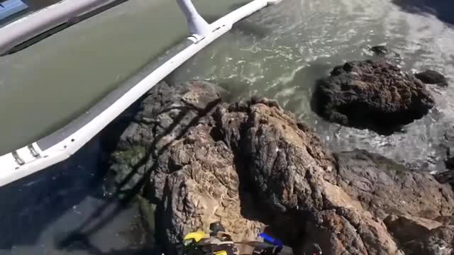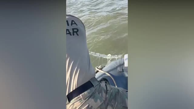 Footage from the Santa Catarina Environmental Military Police shows them pulling the net to the surface, revealing a struggling dolphin desperately thrashing to free itself off the coast of Florianopolis, a tourist hotspot in the Baia Sul region, on Saturday, September 21.