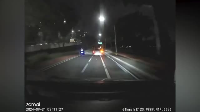 Wei Zhan had to stop his vehicle after noticing that the cylindrical container had fallen onto the ground in front of him in New Taipei City, Taiwan, on September 17.