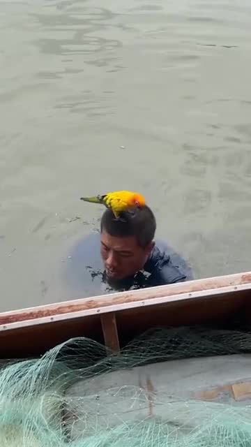 Footage shows the one-year-old bird named Jiggo curiously watching its owner as he fixed the net beside a boat in Samut Songkhram province, Thailand on September 24.