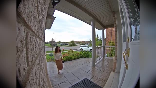 Footage shows the suspect Sarah Badshaw, 18, from Brampton, on the doorstep of the car's owner in Mississauga, Ontario, on September 6. She rings the doorbell and speaks with the owner, who is trying to sell his luxury vehicle.