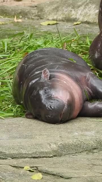 Footage shows the two-month-old animal resting on the ground while its mother was eating grass behind her in their enclosure in Khao Kheow Open Zoo in Chonburi, Thailand, on September 21.