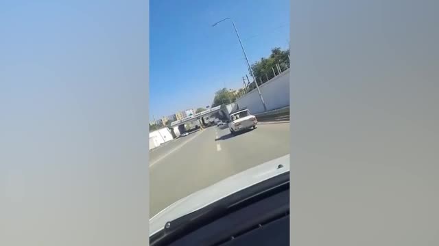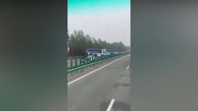The video, captured on a motorway in the province of Shaanxi in China on September 17, reveals the huge transporter toppling over on the road, dumping several cars into the fast lane and completely blocking the route. 2024-09-21 11:43:49