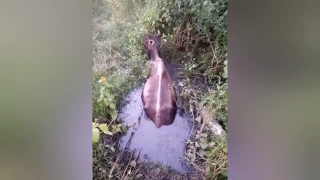 Volunteer Avnish Dubey and Ajay Sondhia from The Atal Kamdhenu Gau Sewa Sansthan Foundation rescued the hapless animal from the mud in Madhya Pradesh, India, on September 20. 2024-09-21 11:32:27