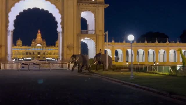 Two Dasara elephants, Kanjan and Dhananjaya, were reported to have fought during feeding time, causing Kanjan to escape from Mysuru Palace in Karnataka on September 20. 2024-09-21 16:35:04