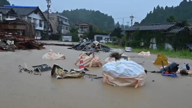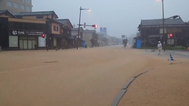 Footage shows inundated streets in Wajima, Ishikawa Prefecture, as the Japanese Meteorological Agency issued a top-level emergency rain warning on Saturday, September 21. 2024-09-23 11:23:50