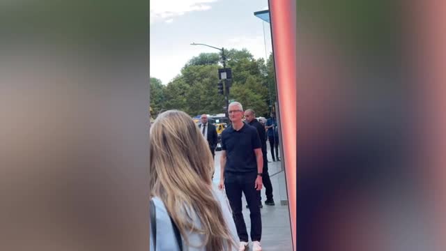 Footage captured by tech fan Josephine shows the chief executive welcoming and engaging with the gadget loyalists at the company's flagship store on 5th Avenue. 2024-09-23 09:45:54