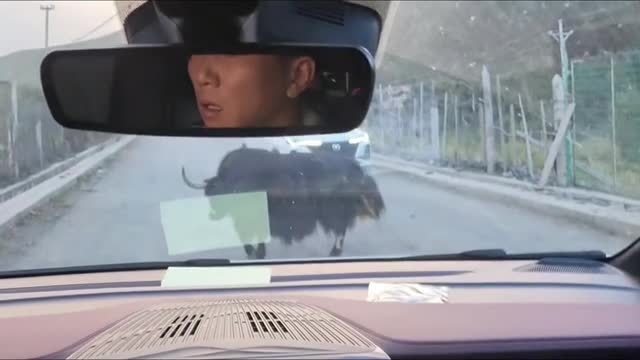 It is unclear why the animal behaved aggressively, but a few cars that tried to get past escaped and were damaged following the incident in the Garze Tibetan Autonomous Prefecture on September 15.