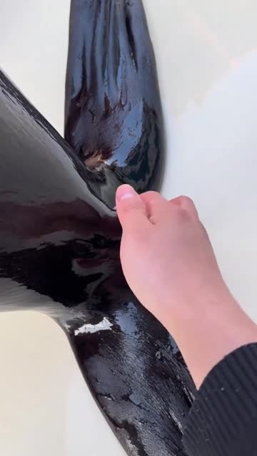 The woman can be seen gently pulling the small tail of the sea creature before stroking her hand towards its head, causing the soaking wet fur to stand on end at Enjoyland Animal Kingdom in Zhengzhou, Henan. 2026-01-21 14:43:11