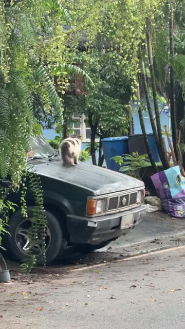 Kiflee Yeebaga spotted Pongneng, his four-year-old Persian cat, lounging on the bonnet of the black 1990 Nissan Big-M in Songkhla, Thailand. 2026-01-21 14:40:26