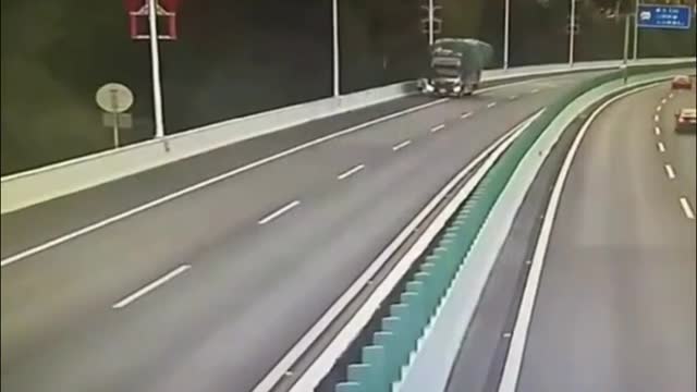 The footage, recorded by traffic officers in Kunming, a city in Yunnan, China, on September 9, shows a man running in front of the overloaded vehicle. Police say the stunt was an attempt to prevent the traffic camera from capturing the truck's number plate.