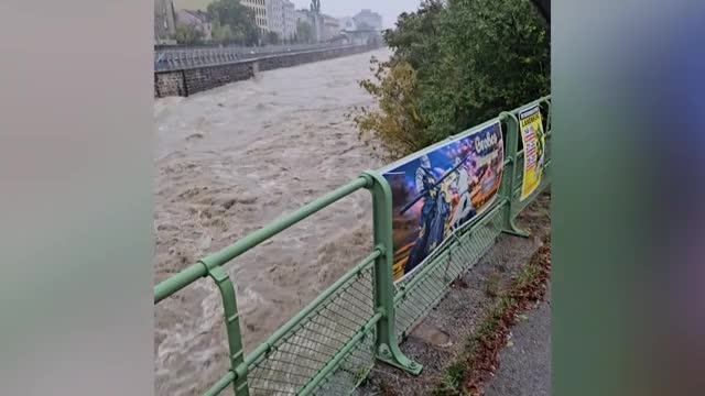 Footage shows the fast-flowing river nearly breaking into the adjacent U4 underground network on Sunday, September 15. At least eight people have bene killed across Austria, the Czech Republic, Hungary, Romania and Slovakia.