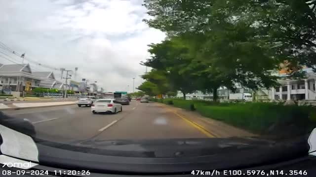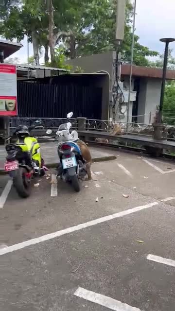 The macaques climbed on either sides of the sedan when a couple pulled over so they could join the vehicle across a road in Chonburi province, Thailand.