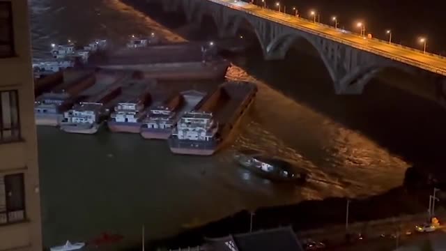 The incident happened during high winds on September 2, when the dry bulk carriers tore free from their anchors and smashed into each other in Wuzhou, Guangxi, China. The ships were filmed crashing into the bridge around 4 am.