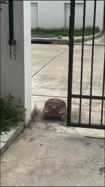 Footage shows the African-spurred reptile crawling through the gap between sliding gate and fence in Bangkok, Thailand, on August 20.
