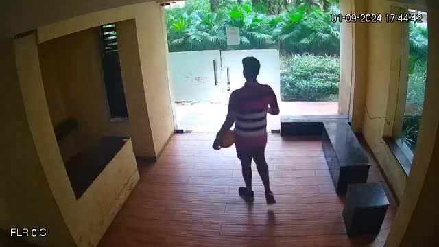 Aniket Jaiswal, 15, walked out of the entrance with a ball to play, but only seconds later, he was seen dashing back inside as the canines were running after him in Uttar Pradesh, India. 2024-09-05 17:51:06