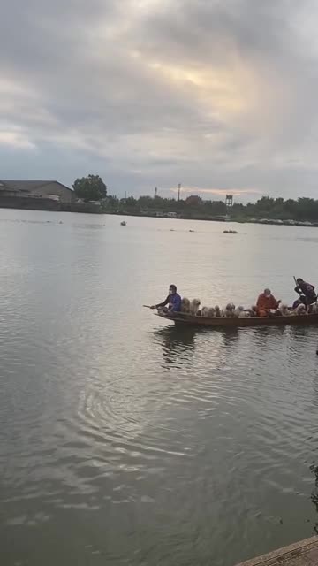 The thirteen pooches perched on the wooden vessel while the orange -robed man sat in the middle in Pathum Thani province, Thailand on September 1. 2024-09-05 20:37:06