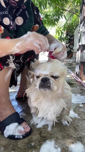 The five-year-old pooch named Ken was having a grooming session with owner Aza Giap when she put red ribbons on top of his head in Khan Hoa, Vietnam on September 4. 2024-09-05 20:37:49